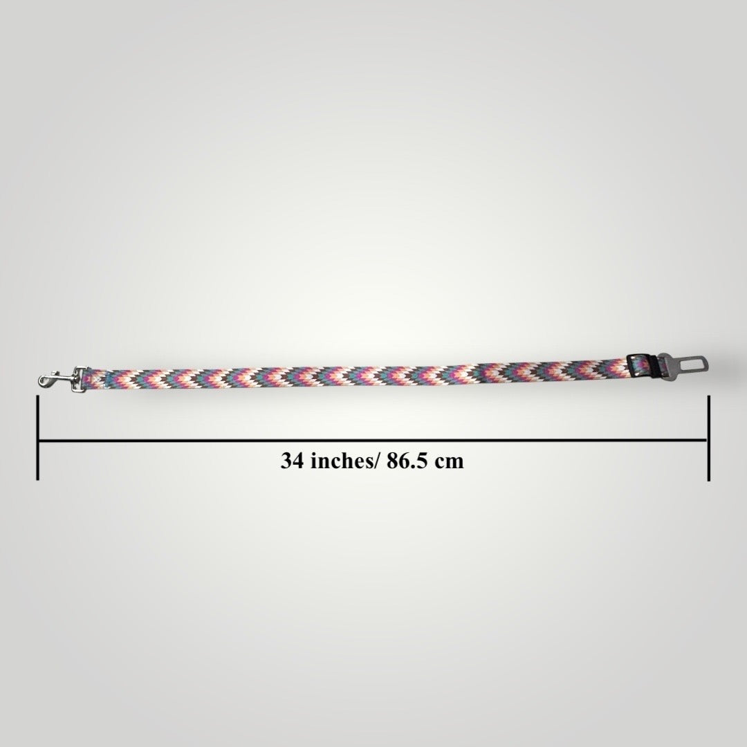Introducing our Patterned Doggo Seat Belt, designed for both safety and style on the road. Featuring a vibrant geometric print, it adds a fun pop of colour while keeping your pup secure on every car ride. Made with strong nylon webbing, a sturdy swivel clip, and a durable metal buckle, this seat belt ensures reliable restraint by attaching directly to your car’s seat belt slot and your dog’s harness.